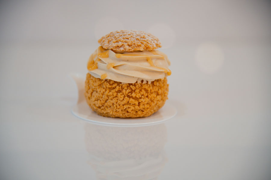 Pâte à choux, crème vanille tonka, caramel onctueux